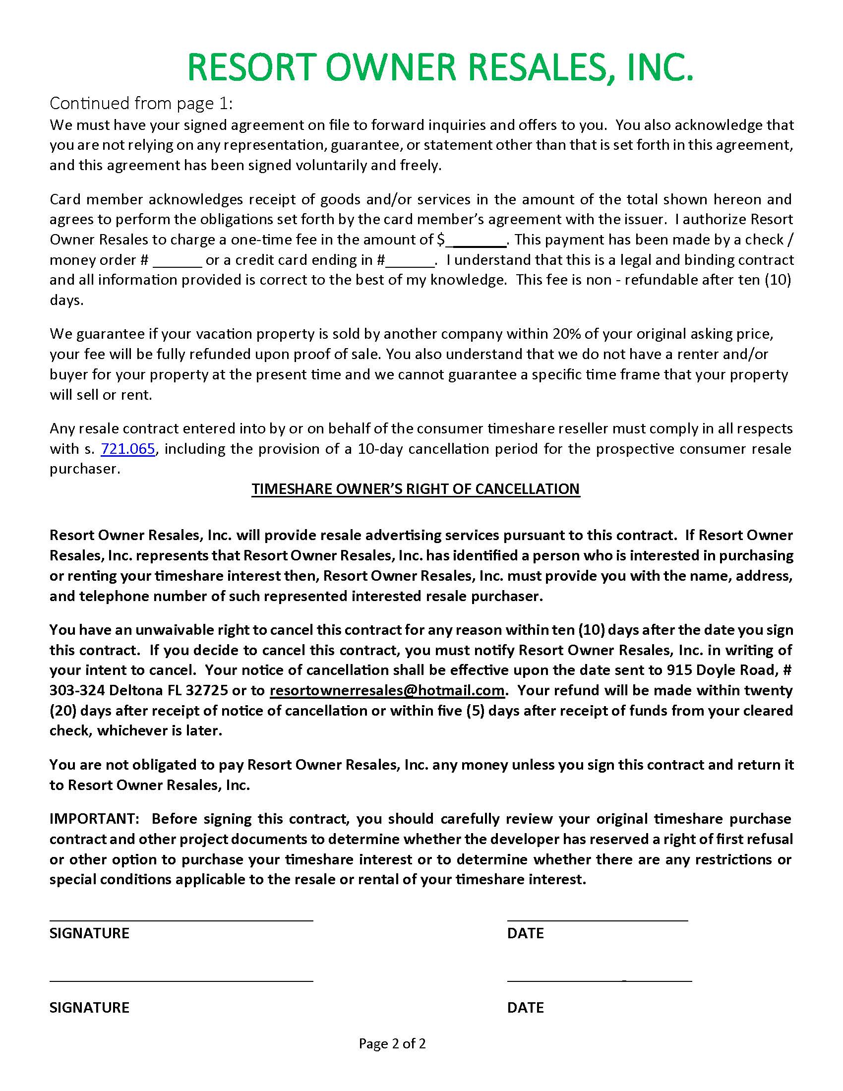 721.20 (9) (a) Prior to listing or advertising a timeshare interest for resale, a resale service provider shall provide to the timeshare interest owner a description of any fees or costs relating to the advertising, listing, or sale of the timeshare interest that the timeshare interest owner, or any other person, must pay to the resale service provider or any third party, when such fees or costs are due, and the ratio or percentage of the number of listings of timeshare interests versus the number of timeshare interests sold by the resale service provider for each of the previous two calendar years that is equivalent to less than one percent.